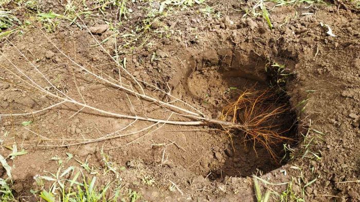 - притисніть молоде деревце ближче до землі. Присипте опалим листям;