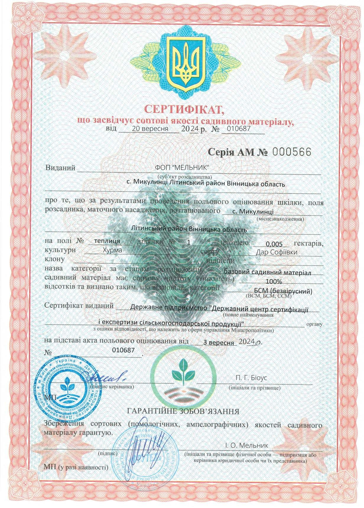 «Наші саджанці сорту «Дар Софіївки» мають сертифікацію та гарантію якості»