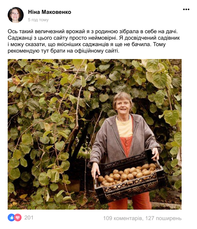 У нас найнижчі ціни на саджанці, які дають найбільшу кількість плодів та мають 100% приживлюваність у будь-якому куточку України. Більше вам не треба купляти ківі в магазині!