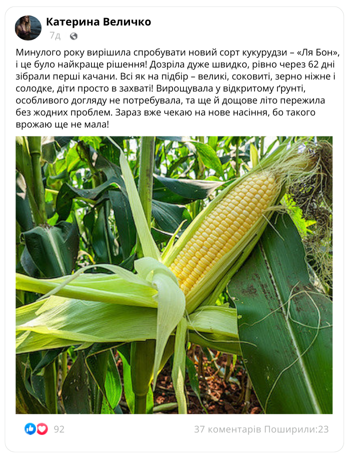 Суперсолодка кукурудза «Ля Бон»: вражає розміром та смаком!