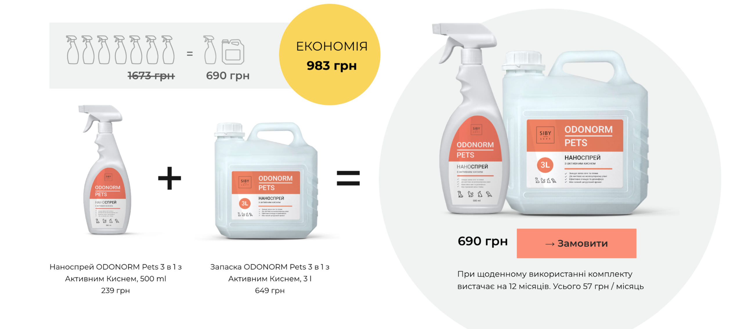 Засіб не маскує запах, а руйнує його молекулярну структуру. Внаслідок хімічної реакції молекули запаху розпадаються на непахучі елементи