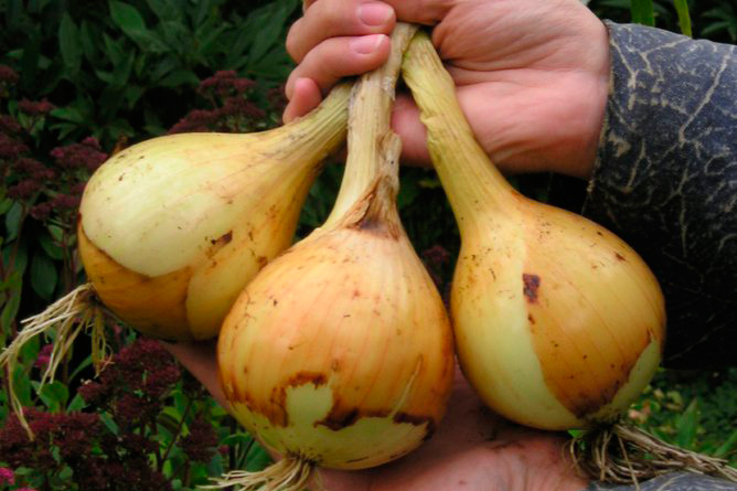 — "Поливав небагато. Раз після посадки, другий раз — коли спека стояла. А далі — земля сама дала, що треба. Я ще ніколи не мав таких соковитих, твердих цибулин. Мені навіть не вірять — питають, чи не з Туреччини привіз!"